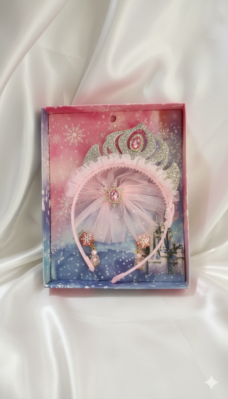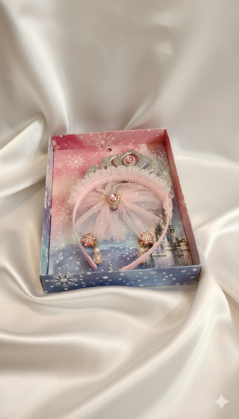 Esta diadema de princesa incluye aretes a juego y un elegante moño, ideal para complementar atuendos infantiles en ocasiones especiales. Cada pieza está diseñada para brindar un toque delicado y sofisticado, asegurando comodidad y estilo. Perfecta para eventos formales o para regalar, combina funcionalidad con estética cuidada, resaltando la belleza y personalidad de quien la lleva.